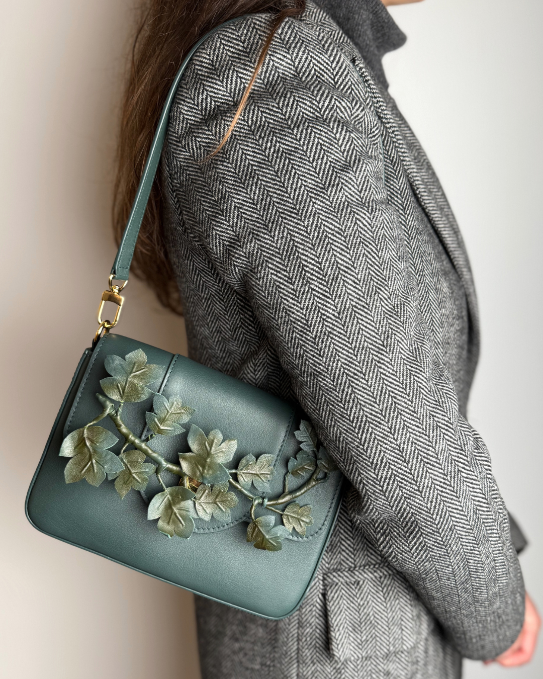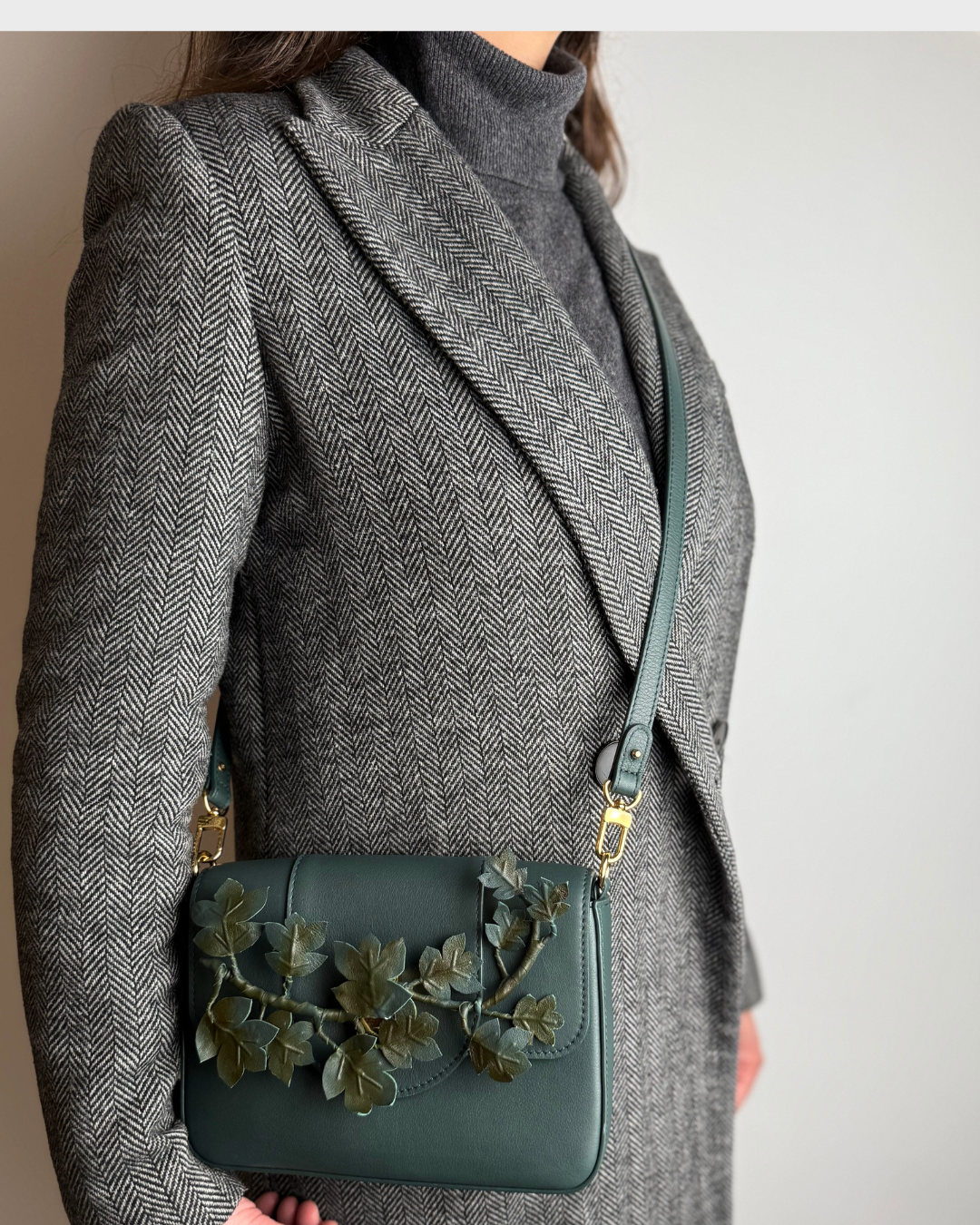 With its deep green tone, boho-inspired extravagance, and a removable ivy leather appliqué, Jones Green is the perfect blend of free-spirited elegance and bold personality.