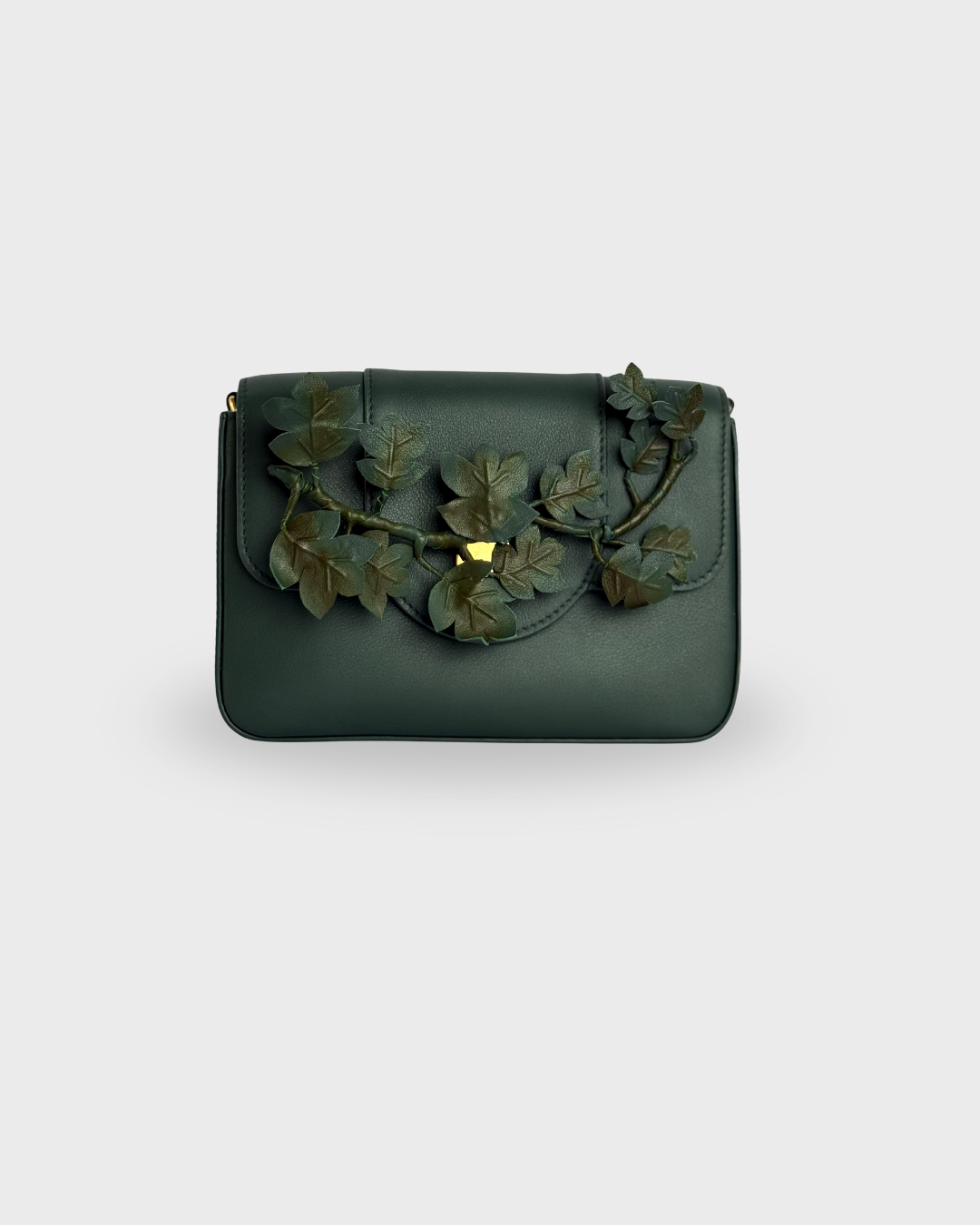 FYI: 100% Cowhide Leather • Brass Hardware • Removable Green Ivy Appliqué